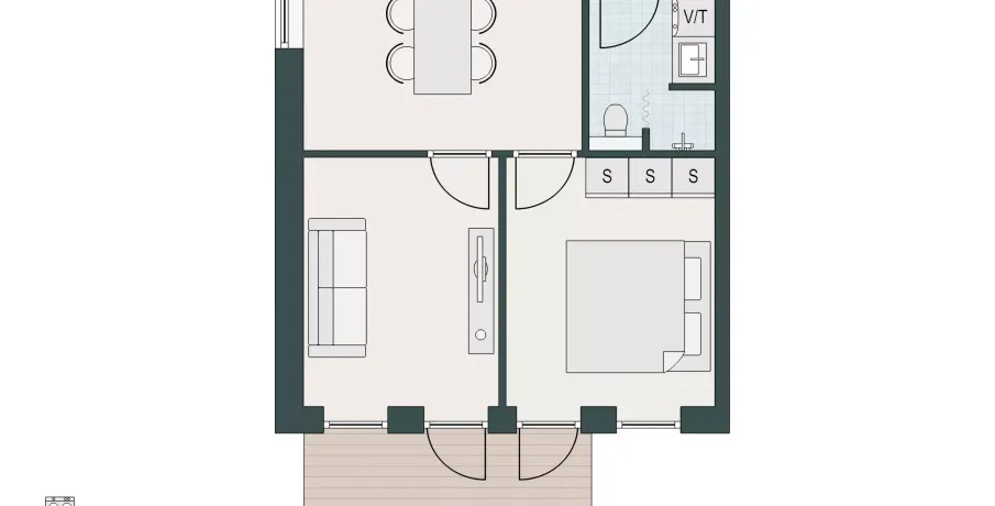 3 værelses lejlighed på 60 m2