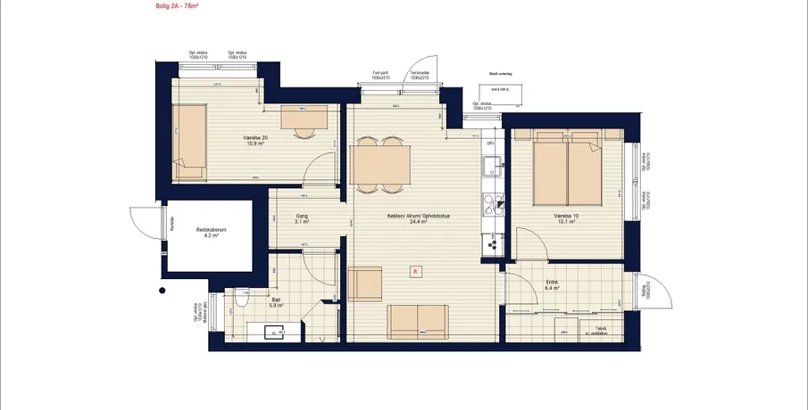 2 værelses lejlighed på 78 m2