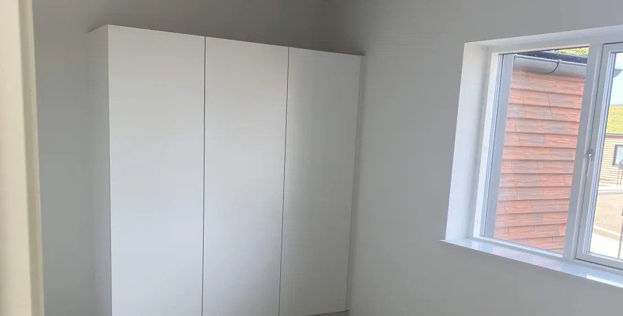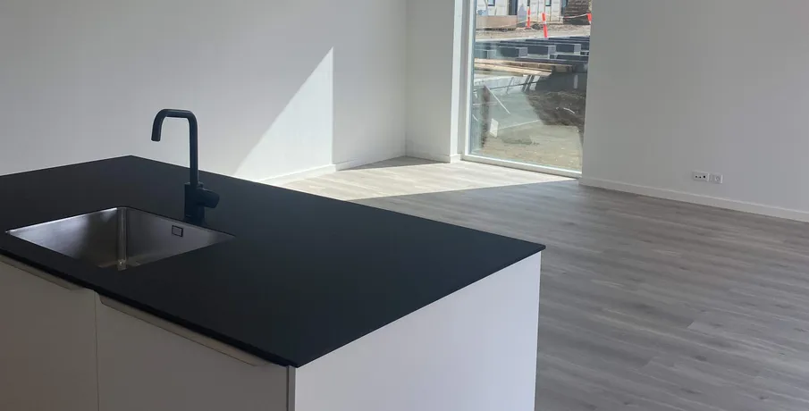 Velkommen til skovhusene Fredericia. Blandt trekantsområdets mest eksklusive rækkehuse.. Denne bolig består af 3 rum inklusiv et stort køkkenalrum og stue, der indbyder til samvær med familie og venner. I køkkenet finder du et moderne, hvidt Invita Køkken med Pyrolyse ovn, induktionskogeplade samt opvaskemaskine.. Derudover rummer boligen foruden soveværelse samt et ekstra værelse til børn eller overnattende gæster . . Fra stuen er der udsigt til åbne vidder gennem store vinduespartier og adgang til privat terrasse.. Husets indgang byder på en rummelig entre med plads til sko og overtøj samt vaskemaskine og tørretumbler.. Boligen er designet til velvære med fokus på et godt indemiljø. Derfor opvarmes lejligheden ved hjælp af gulvvarme med fjernvarmeforsyning, ligesom lofterne er beklædt med troldtekt, hvilket sikrer en god akustik. . Til boligen medfølger eget skur til ekstra opbevaring. Endvidere er der el ladestandere. Omkranset af eng, anlagte vildtarealer og skovbryn er Skovhusene et hjem med plads til dem, der ønsker at bo i naturen – både seniorer og børnefamilier. Skovhusene er bygget på troen på, at bæredygtighed og fællesskab er nøglen til det gode liv.. Derfor har vi skabt et fællesområde, som byder på terrasse med udekøkken, hvor naboer kan samles, legeplads til de mindste beboere og et skønt orangeri, hvis glaskonstruktion forbinder udenfor med indenfor og giver mulighed for ophold under åben himmel året rundt..