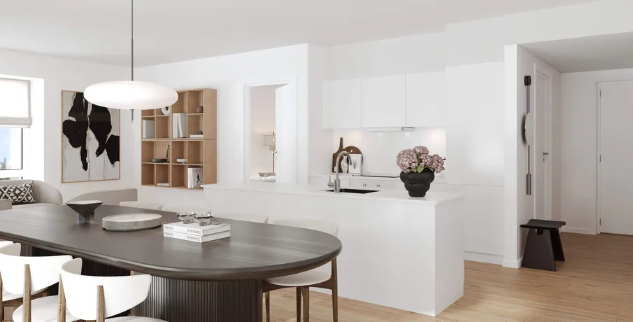 . Lygtehusene ligger dér, hvor Nørrebro og Nordvest mødes – i et område i hastig udvikling og med en puls, man kan mærke. Her bor du få minutters gang fra både S-tog, metro og busser, og på cykel når du resten af byen på ingen tid.. Lygtehusene er et moderne Multi-Age boligkvarter midt på Nørrebro – et sted, hvor livet kan folde sig ud i alle dets faser. Her mødes unge, børnefamilier og seniorer i et mangfoldigt miks af boligtyper og fællesskaber, der understøtter både hverdag og livsdrømme.. Projektet favner bredt og bygger bro mellem de omkringliggende bydele – og med et frodigt, grønt parkrum som samlende hjerte, skabes en ny identitet for området.. Med ca. 24.000 m² bolig og erhverv formes en levende bydel med stærke forbindelser – til byen, til naboerne og til fremtiden. Under hele den sydlige del etableres parkeringskælder, og der suppleres med p-pladser på terræn, så det grønne liv kan få lov at udfolde sig mellem bygningerne.. Fællesarealer, grønne uderum og et centralt fælleshus danner rammen om et kvarter, hvor mennesker trives – sammen og hver for sig.. Lygtehusene er et sted at lande, vokse og blive.. OBS: Billeder er visualiseringer og afspejler ikke den specifikke bolig.
