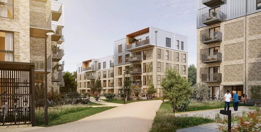 . Lygtehusene ligger dér, hvor Nørrebro og Nordvest mødes – i et område i hastig udvikling og med en puls, man kan mærke. Her bor du få minutters gang fra både S-tog, metro og busser, og på cykel når du resten af byen på ingen tid.. Lygtehusene er et moderne Multi-Age boligkvarter midt på Nørrebro – et sted, hvor livet kan folde sig ud i alle dets faser. Her mødes unge, børnefamilier og seniorer i et mangfoldigt miks af boligtyper og fællesskaber, der understøtter både hverdag og livsdrømme.. Projektet favner bredt og bygger bro mellem de omkringliggende bydele – og med et frodigt, grønt parkrum som samlende hjerte, skabes en ny identitet for området.. Med ca. 24.000 m² bolig og erhverv formes en levende bydel med stærke forbindelser – til byen, til naboerne og til fremtiden. Under hele den sydlige del etableres parkeringskælder, og der suppleres med p-pladser på terræn, så det grønne liv kan få lov at udfolde sig mellem bygningerne.. Fællesarealer, grønne uderum og et centralt fælleshus danner rammen om et kvarter, hvor mennesker trives – sammen og hver for sig.. Lygtehusene er et sted at lande, vokse og blive.. OBS: Billeder er visualiseringer og afspejler ikke den specifikke bolig.