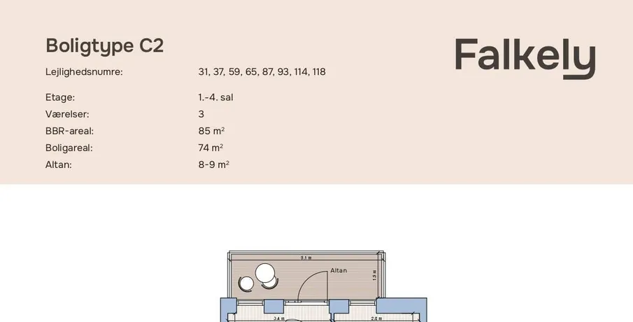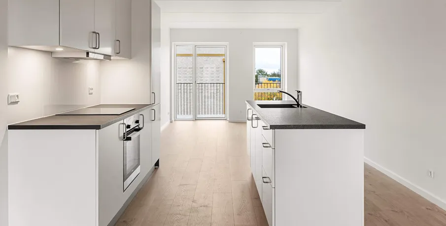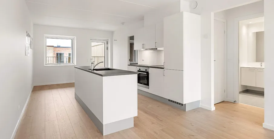 . Falkely er et godt sted at lande. Her opføres 132 moderne lejeboliger på Industrivangen i Ishøj – omgivet af grønne omgivelser og med kort afstand til både indkøb, kultur, legepladser og offentlig transport. På bare 18 minutter kan du være i København, mens du derhjemme nyder roen tæt på strand og natur.. Lejlighederne rummer 2-4 værelser med gennemtænkt indretning, køkken-alrum, moderne badeværelse med vaskesøjle og egen altan. Her er plads til både hverdag og samvær, og samtidig frihed til at slippe bekymringer om renovering eller havearbejde.. Du får adgang til fælles gårdhaver med legezoner og plantebede samt tagterrasser med udsigt over de grønne sedumtage og nærliggende natur. Ejendommene er udstyret med elevatorer og parkering, så hverdagen bliver enkel og bekvem.. Indflytning fra februar 2026. Lejepriser fra 10.200 kr./md.. OBS: Billeder er visualiseringer og afspejler ikke den specifikke bolig.