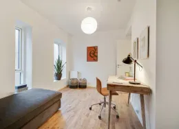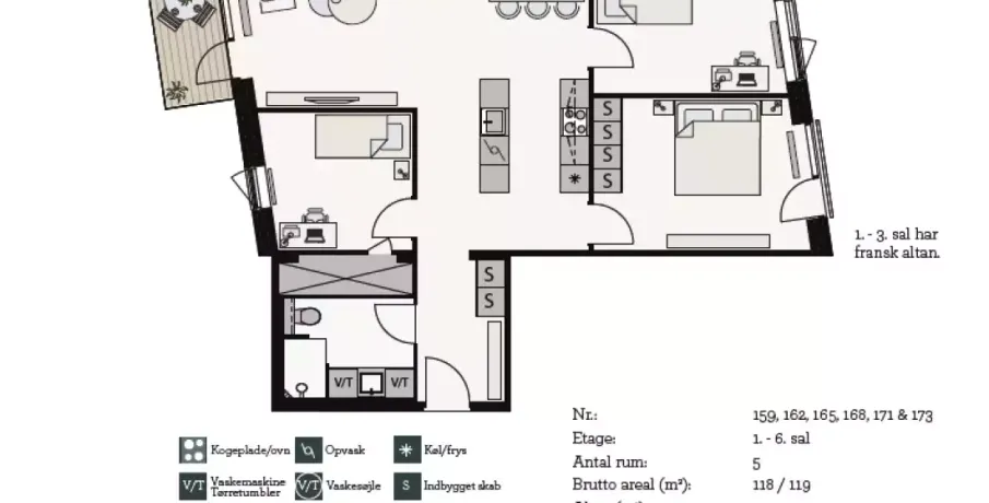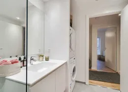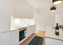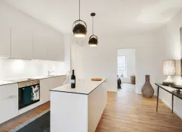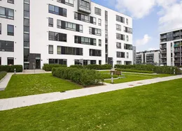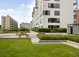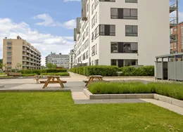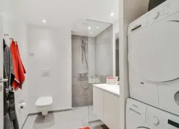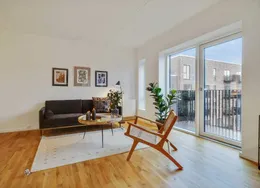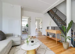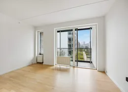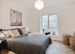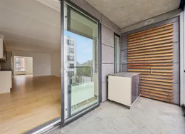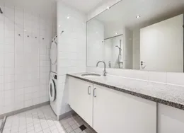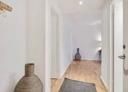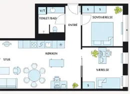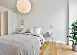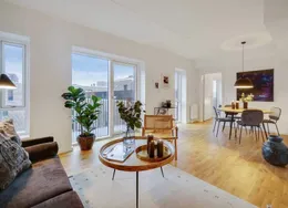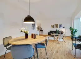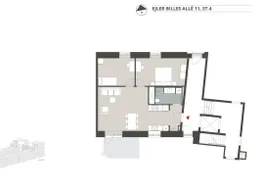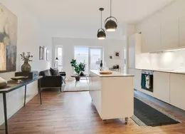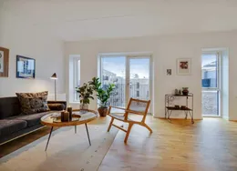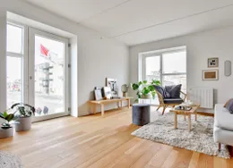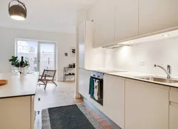 Lejligheden har et fantastisk lysindfald fra de store vinduer og er kendetegnet ved lækre materialer overalt såsom grebsfrit Invita køkken med hårde hvidevarer fra Siemens og tidløst badeværelse med gulvvarme. Her får du smukke materialer i grålige og varme, lyse jordfarver - nøje udvalgt til at skabe harmoni med den farverige og frodige taghave. Det er muligt at ansøge om husdyrtilladelse i alle vores lejemål. OBS: ønskes der mål af lejligheden skal du selv huske opmålings udstyr til fremvisning, da der ikke er mål på plantegningen.