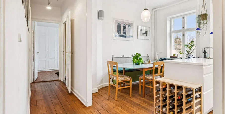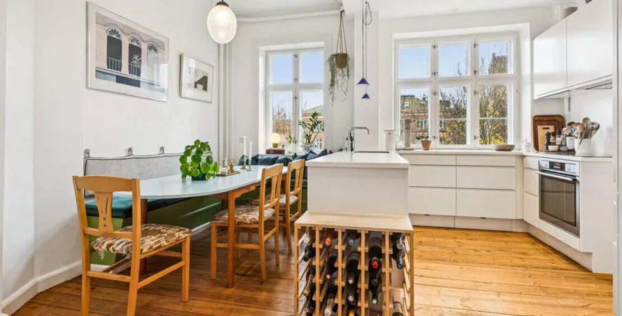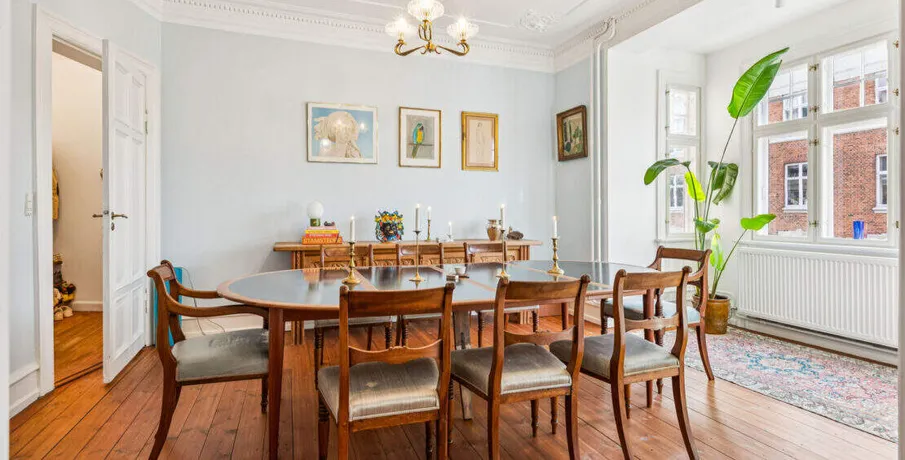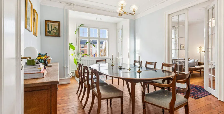 . Beskrivelse. Rent: 20,000 DKK/month (excluding utilities — water and high-speed internet included). Deposit: 3 months’ rent. Lease term: 12 months. No pets – No shared tenancy. Located on Sankt Thomas Allé 6, 3.tv, this beautifully renovated and fully furnished 3-room apartment offers classic charm combined with modern comfort. With high ceilings, original details, warm wooden floors and elegant décor, the home provides an inviting and stylish living experience in one of Frederiksberg’s most desirable neighbourhoods.. The Apartment. Spanning 99m², the apartment features:. • A bright living room with French doors, large windows, and tasteful Scandinavian furniture. • A spacious dining room ideal for hosting and everyday living. • A fully equipped modern kitchen with dishwasher, ample storage, and a cosy built-in dining nook. • A comfortable bedroom with wardrobe space. • A newly renovated bathroom with washing machine and separate shower area. • Beautiful natural light throughout and thoughtfully placed design touches. • Access to a charming shared courtyard with greenery and outdoor seating. The apartment is move-in ready, down to the last detail — perfect for anyone seeking a turnkey home with style and character.. The Area – Frederiksberg at Its Best. Sankt Thomas Allé is a peaceful, tree-lined street just moments from everything that makes Frederiksberg so coveted:. • Frederiksberg Allé and its cafés, bakeries, and boutique shops. • Gammel Kongevej, known for dining, shopping and city buzz. • Green spaces such as Frederiksberg Gardens and Søndermarken. • Excellent public transport, including metro stations within walking distance. • A safe, elegant neighbourhood popular among professionals, expats, and families. This is a rare opportunity to live in a fully furnished classic Frederiksberg home with soul, comfort, and exceptional location.. Energiklasse:. C.