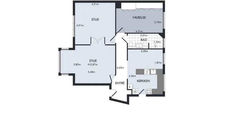 3 værelses lejlighed på 99 m2