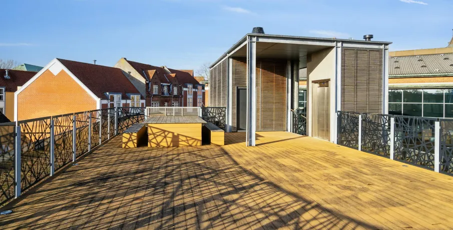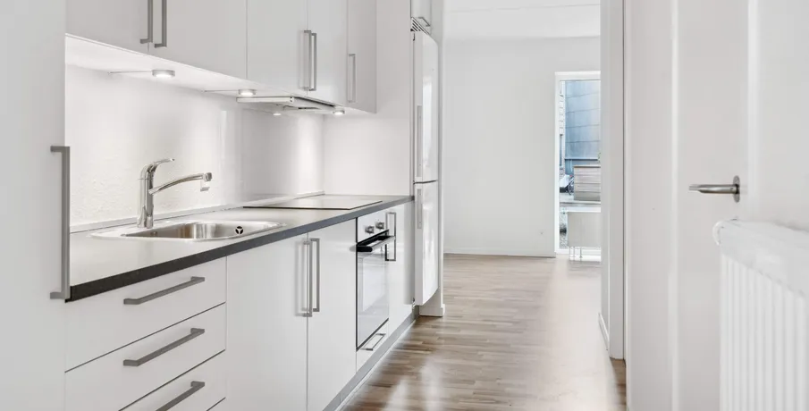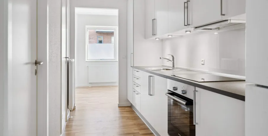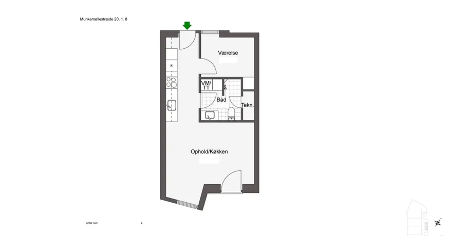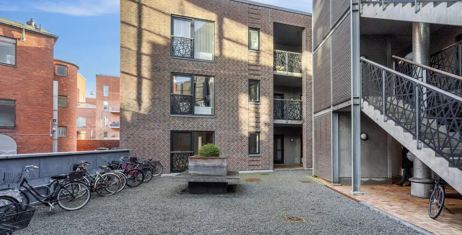 Om boligen:Velkommen til denne moderne 2 værelses lejlighed, der byder på stilfuld komfort og praktiske genialiteter. Her er virkelig tænkt over fordeling af kvadratmeterne med en smart planløsning, der giver en optimal indretning. Det moderne køkken er et sandt knudepunkt for denne lejlighed med en flydende overgang til stuen. Udstyret med topmoderne apparater og elegant design er det et ideelt sted til madlavning og underholdning. De glatte overflader og smarte opbevaringsløsninger giver både funktionalitet og æstetik mens det åbne layout skaber en rummelig og inviterende atmosfære. Den ekstra hyggekrog i stuen giver mulighed for at give et personligt touch i indretningen. Overfor køkkenet ligger lejlighedens værelse.Badeværelset er med til at skabe en oplevelse af ro og afslapning med en praktisk vaskesøjle, der gør det at ordne vasketøjet til en leg. Det stilfulde design og de moderne armaturer skaber en fornemmelse af luksus mens det funktionelle layout sikrer praktisk brug i hverdagen. Den franske altan, er med til at åbne op for lejligheden, og giver mulighed for at lade den friske luft strømme ind.Bemærk venligst, at billederne kan være fra en anden bolig, hvorfor indretning, beliggenhed og udsigt kan variere. Se plantegningen for indretningen af denne bolig.Om ejendommen:Munkemøllestræde 20 i Odense C præsenterer en unik boligmulighed til dig, der ønsker et hjem omringet af byliv. Ejendommen byder på 26 attraktive lejemål. Hertil kommer en stor fælles tagterrasse, hvor du kan mødes med naboer eller blot nyde en rolig stund for dig selv.Om området:Bo i historiske og kulturelle omgivelser, næsten lige ved siden af H.C. Andersens barndomshjem og tæt på det idylliske grønne område, Munke Mose. Livet her er omringet af et udvalg af hyggelige restauranter og caféer, der sikrer, at du aldrig er langt fra byens kulinariske oplevelser.