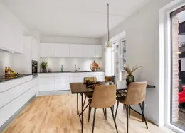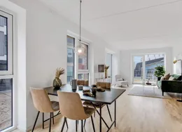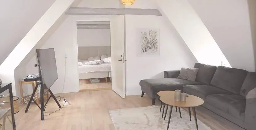 . Lejligheden er centralt, roligt beliggende i fredet ejendom. Lejligheden er total renoveret for nogle år siden med nyt badeværelse, køkken, nye gulve m.v. Ved siden af ejendommen ligger offentlig P-plads. Muligt at købe parkeringskort til en rimelig pris. Gåafstand til gode indkøbsmuligheder, caféer park m.v og kort afstand til den hyggelige havn med gode restauranter og caféer.. Køge byder på et rigt nærmiljø med både natur og kultur. Her finder man skovområder, strande og parker inden for kort afstand. Byen har også et aktivt kulturliv med museer, teatre og musikarrangementer, der giver mulighed for at nyde kulturelle oplevelser tæt på hjemmet. Med Køge station som knudepunkt har man nem adgang til både S-tog og regionaltog, der har gode forbindelser til København og resten af Sjælland.. Indgangspartiet er en hyggelig, aflukket terrasse med indgang til entré med depotrum og klinkegulv. Fra entréen indgang til mindre værelse og nydeligt badeværelse med bruseniche, toilet og håndvask nedfældet i skabs arrangement. Trapper til 1. sal indeholdende repos, flot, lyst spisekøkken med alle hårde hvidevarer , spiseplads og ny afslebne plankegulve. Fra køkkenet træder man ind i en hyggelig opholdsstue med hanebjælker og tilstødende rummeligt master soveværelse.. Nøgleinfo:. 4600 Køge – Rebslagergade. Antal værs/m2: 3/95. Mdl. leje: Kr. 12.500,-. A conto varme: Kr. 700,-. A conto vand: Kr. 200,-. Lejeperiode: Ledig i 2 år. Dyretilladelse: Efter aftale.