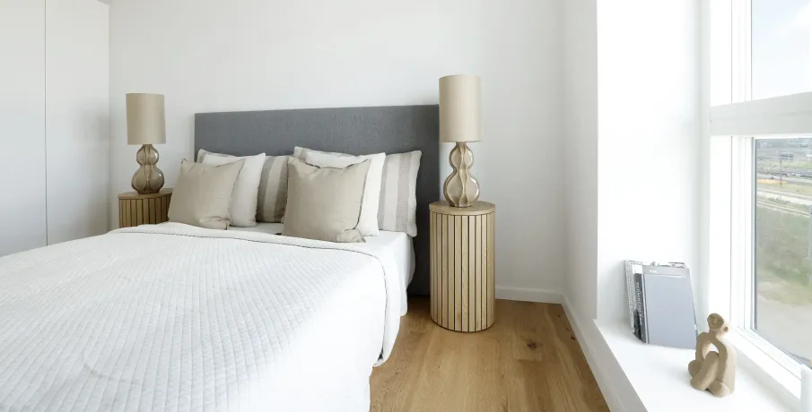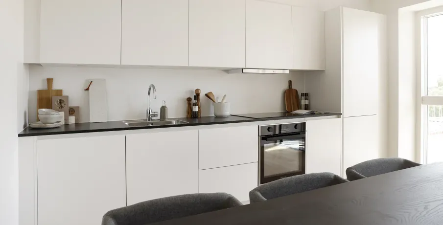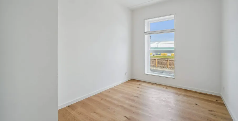 Om boligen: Denne skønne og optimerede lejlighed starter med at byde dig velkommen i entré med plads til at hænge overtøjet. Fra entréen har du adgang til en fordelingsgang med adgang til boligens fire værelser, hvor der i alle værelserne er plads til både seng og skrivebord. For enden af fordelingsgangen finder du depotrummet, som med fordel kan bruges til walk-in, hvis dette foretrækkes. Fra gangen har du ydermere adgang til et separat toilet og badeværelser, som er opført i et tidløst lækkert design, rummeligt og med separat bruseniche og hertil både med vaskemaskine og tørretumbler. I det store lyse køkken-alrum finder du et lækkert fuldt udstyret hvidt køkken med køle-/fryseskab, ovn, kogeplader, emhætte og opvaskemaskine samt god opbevaringsplads. Stuen er godt indrettet med optimale anvendelsesmuligheder, hvor der veludnyttet kan etableres både en sofa- og spiseafdeling. Stuen munder ud i en stor sydvendt terrasse, hvor sol og frisk luft kan nydes og hvor du har kig ud over det nærliggende villaområde. Hele lejligheden er desuden installeret med gulvvarme, som kan justeres individuelt i de enkelte rum. Om Banehaverne: Banehaverne er tegnet af det prisvindende arkitektfirma Sweco Architects, som har ønsket at skabe en ejendom med fokus på fællesskab og livskvalitet.Ejendommen rummer i alt 16 bygninger (inkl. rækkehuse), der centrerer sig omkring smukke gårdrum med legearealer og rolige opholdszoner. I alt kommer her 6 unikke gårdrum, som forbindes af en lang sti, som snor sig gennem hele komplekset og ender i det store aktivitetsområde Kilen.Kort om området: Området omkring Banehaverne byder på en harmonisk blanding af natur, kultur og byliv.Her er storslået natur ved både vand og skov, gode skoler og daginstitutioner samt et væld af fritidstilbud inden for både friluftsliv, idræt og kreative aktiviteter.Alt sammen er med til at skabe de bedste forudsætninger for en hverdag, der glider nemt og er rig på sjove og spændende muligheder.Banehaverne nyder godt af deres strategiske placering tæt på København. Med kun 10 min. gang til Glostrup Station og nem adgang til motorvejsnetværket er København tæt på. Det åbner dørene til en bred vifte af jobmuligheder og uddannelsesinstitutioner. Du kan nyde godt af den korte afstand til København, mens du stadig kan trække dig tilbage til den rolige atmosfære i Glostrup/Brøndby om aftenen.