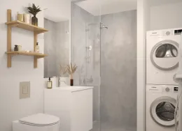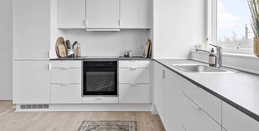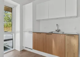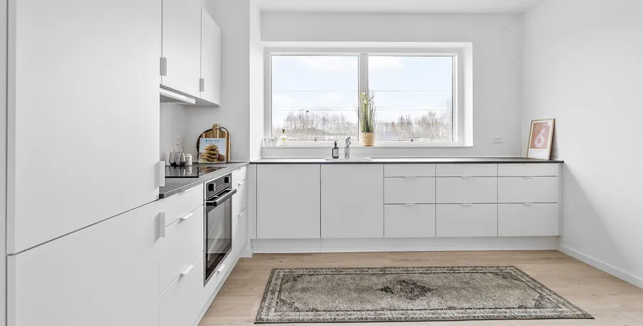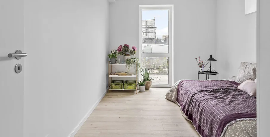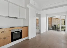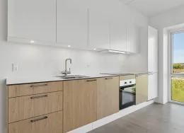Skøn lys 2-værelses lejlighed i nyopført byggeri fra 2024.. Træd ind i dit nye hjem i et moderne byggeri i stueplan med egen privat terrasse.. Lejlighederne er opført med fokus på kvalitet og funktionalitet. De byder på en rummelig entré med god plads til overtøj og sko, samt en stor, åben stue og køkken-alrum, der er udstyret med alt i hårde hvidevarer, inklusive en integreret opvaskemaskine og køl/frys. De smukke, hvide HTH-skabselementer og de flotte laminatgulve fuldender det stilrene design. Gulvvarme findes i alle rum, både i stueplan og på 1. sal – perfekt til en behagelig temperatur hele året.. Terrassedøren åbner op til den private terrasse, hvor du kan nyde solrige dage og hyggelige aftener. Den sikrer samtidig et fantastisk lysindfald i hele boligen.. Badeværelset er indrettet med store, grå klinker og et lækkert, lyst badmiljø fra HTH. Her finder du også en praktisk kombineret vaskemaskine/tørretumbler, der gør hverdagen lettere.. Lejlighedens soveværelse er udstyret med indbyggede, hvide skabe og god plads til indretning af både soveplads og kontor eller studieplads. Laminatgulvene giver et elegant og funktionelt look.. Vær opmærksom på, at billederne er vejledende – indretning og vinduernes placering kan variere.. Vinduerne, der vender mod togbanen, er lydisolerede og der er opsat en lydvæg som afskærmning, så du kan nyde en rolig og behagelig boligoplevelse.. Lejlighederne er en del af et dejligt fællesskab med grønne udeområder, hvor du kan slappe af og nyde naturen. Der hører et uisoleret skur til hver lejlighed.. Parkering er gratis på de parkeringspladser, der er i området. Der er også mulighed for at lade din elbil ved de opstillede lade standere i området.. Huslejen er ekskl. forbrug, og du afregner direkte med forsyningsværkerne for el, vand og varme. . Husdyr/kæledyr er desværre ikke tilladt.. Poppelhusene ligger på en rolig, lukket vej blot 8-10 km sydvest for Aarhus C. Du har alt, hvad du behøver, lige i nærheden – 250 meter til den nye Rema1000, 500 meter til Netto, samt daginstitution, skole og offentlig transport. Der er også nem adgang til E45.. Hasselager byder på smuk natur, og i øjeblikket er der gang i udbygningen af Hasselager Vildskov, som giver flere fantastiske muligheder for gåture. Du finder også flere dejlige hikingruter og smukke skovsøer i området.. Kontakt os i dag for mere information og for at booke en fremvisning af denne fantastiske lejlighed!
