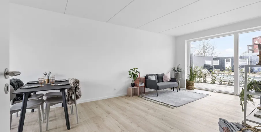 Lækker 2-vær. lejlighed med egen terrasse i nyopført ejendom i Hasselager.