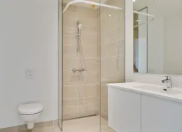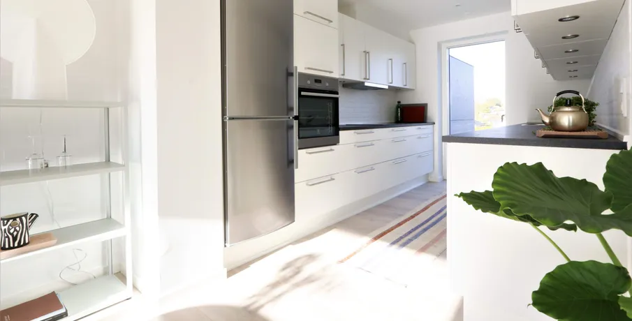Der er mulighed for overtagelse FØR 1/7-26, hvis dette ønskes!. Dejligt nyere 2-plans rækkehus beliggende syd for Aarhus i naturskønt område tæt på skov og strand, samt kort afstand til motorvej E45.. Rækkehuset indeholder entré, stor stue og lækkert Svane køkken med god skabs- og bordplads, hvidevarer og mulighed for installation af egen opvaskemaskine.. Samtidig er der et flot badeværelse med lyse skabe, samt plads til egen vaskesøjle. . Lejemålet indeholder endvidere 1 gæstetoilet og 3 gode værelser med faste skabe.. Vinduer og døre er fra Velfac i træ/alu med 3-lags glas.. Der er lyse laminatgulve i køkken, stue og på værelserne. Klinker i entré, wc og badeværelse. Der er gulvvarme i stueplan og på badeværelset på 1-sal.. Fra stuen er der foruden adgang til 1. salen, udgang til egen have med flisebelagt terrasse.. Der hører til lejemålet 1 stk. uisoleret redskabsrum på 3,6 m² med strøm og betongulv. . Adgang til fælles grønne områder, gode parkeringsforhold med mulighed for at lade sin elbil og tæt på indkøb, skole og daginstitution.. Malling udgør sammen med sine nabobyer et velfungerende samfund med institutioner, skoler og foreningsliv, som skaber fantastiske lokale rammer, og området henvender sig både til unge, ældre, enlige og børnefamilier.. Huslejen er ex. forbrug.. Forbrug af el, vand og varme afregner lejer direkte til værkerne.. Husdyr/kæledyr er ikke tilladt.. Kontakt kontoret for fremvisning..