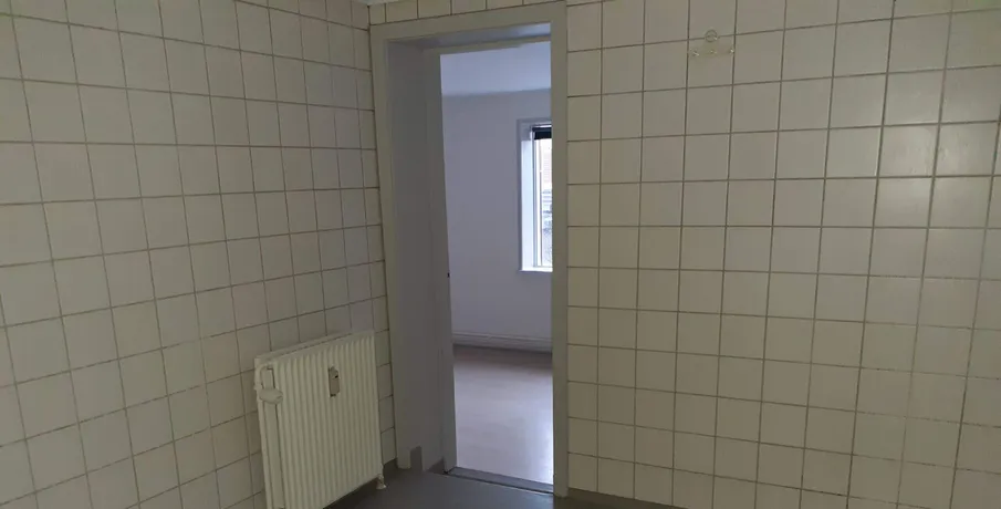 Beliggende centralt ved gågaden i Hjørring. Huset er indrettet med entré, hvorfra der er adgang til soveværelse samt køkken/opholdsstue. Fra stuen er der adgang til stort badeværelse. I badeværelset er der vaskemaskine tilkoblet , og der er mulighed for tilkobling af tørretumbler. Hårde hvidevarer: komfur, emhætte og vaskemaskine. El afregnes direkte til Energi Nord.