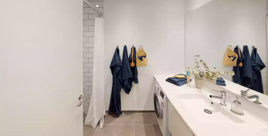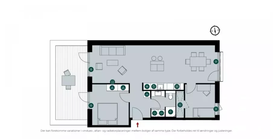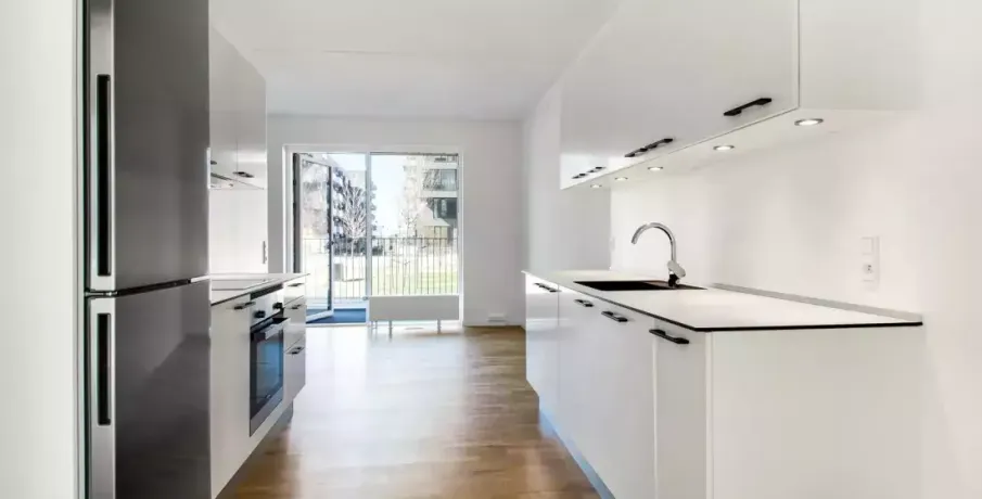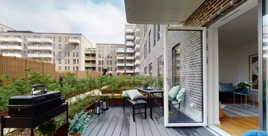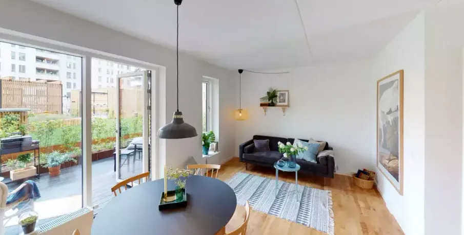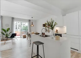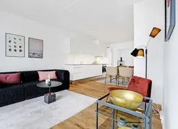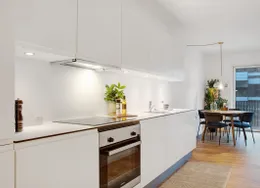 Lejligheden er indrettet med et stort alrum, hvor køkken og stue smelter sammen og skaber en rummelig atmosfære. De store vinduespartier trækker lys ind i lejligheden fra alle vinkler. Dertil er boligen udstyret med et moderne køkken fra Invita, hårde hvidevarer fra Bosch Siemens samt praktisk skabsplads i mastersoveværelset. Fra gangen har du adgang til det rummelige og indbydende badeværelse med gulvvarme, formstøbt marmorvask, væghængt toilet samt vaskesøjle. Fra stuen har du udgang til en stor møblérbar altan, der giver et privat pusterum med masser af sol, frisk luft og hygge. Det er muligt at ansøge om husdyrtilladelse i alle vores lejemål. OBS: ønskes der mål af lejligheden skal du selv huske opmålings udstyr til fremvisning, da der ikke er mål på plantegningen.