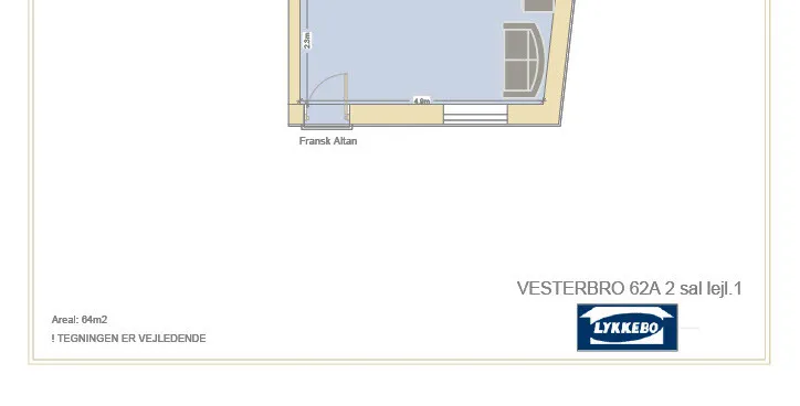 . Velkommen til denne lejlighed. hvor lys og livlig stemning møder en central beliggenhed. En indflytningsklar bolig med en behagelig atmosfære.. Lejligheden byder på en rummelig stue, der indbyder til hygge og samvær. Her er plads til både sofa og spisebord, og de store vinduer giver et dejligt lysindfald. De to værelser er velproportionerede og kan bruges som soveværelse samt kontor eller gæsteværelse. Den åbne planløsning skaber en god forbindelse mellem rummene og giver en følelse af luftighed.. Køkkenet er funktionelt indrettet med moderne faciliteter, der gør madlavningen til en fornøjelse. Badeværelset er praktisk og har de nødvendige installationer. Lejligheden fremstår velholdt med nyere gulve og nyistandsatte vægge, hvilket gør den klar til indflytning.. Ejendommen. Her er elevator tilgængelig, hvilket gør adgangen let og bekvem. Fællesarealerne er velholdte og indbyder til et godt naboskab.. Området omkring Vesterbro er præget af liv og aktivitet. Med kort afstand til banegården, busterminalen og indkøbsmuligheder er du aldrig langt fra hverdagens fornødenheder. De skønne grønne områder i Kildeparken og havnen, der ligger blot få minutters gang væk, tilbyder mulighed for afslapning og rekreation. Kildeparken er et samlingspunkt for mange events og giver liv til området..