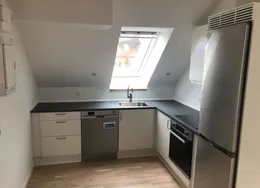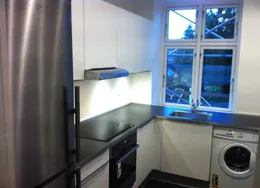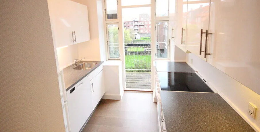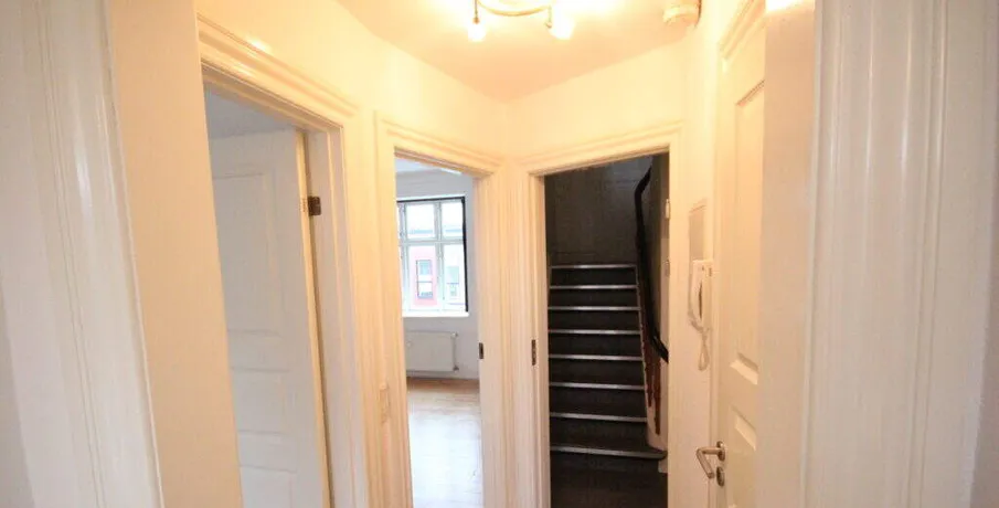 Stor delevenlig lejlighed som for nyligt er renoveret og med badeværelse på begge etager.