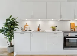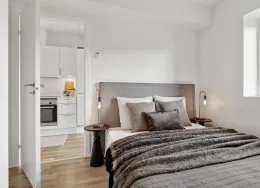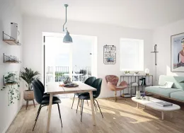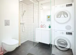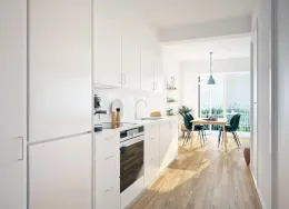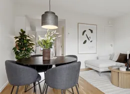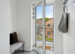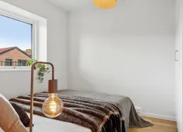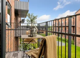 Boligen Lejlighederne er opført i solide og velkendte materialer med fokus på både kvalitet og funktionalitet. Der er flotte trægulve, gulvvarme i hele lejligheden og store vinduespartier, som giver et skønt lysindfald og en behagelig atmosfære. Hver bolig har sin egen altan eller terrasse, hvor du kan nyde udelivet i rolige omgivelser. Under ejendommen er der et praktisk depotrum til hver lejlighed – perfekt til opbevaring af f.eks. flyttekasser og sæsonudstyr. Der er mulighed for at tilkøbe en P-licens til parkeringsplads på arealet foran ejendommen, så du altid kan parkere tæt på din bolig. Lejlighederne spænder fra 50 til 156 m² og har mellem 2 og 6 værelser. Ejendommen Ejendommen fremstår moderne og indbydende med grønne fællesarealer mellem bygningerne, hvor både børn og voksne kan trives. Her kan børnene lege trygt, mens de voksne kan nyde solen på en bænk eller mødes til en hyggelig snak med naboerne. Byggeriet er udført i gode materialer og med fokus på at skabe et trygt og velfungerende boligmiljø. Kombinationen af grønne opholdsrum, god parkering og velindrettede lejligheder gør ejendommen til et attraktivt sted at bo. Det er desuden sjældent, at der bliver ledige lejligheder her – et tydeligt tegn på, at beboerne er glade for at bo i ejendommen. Området Beliggenheden er helt ideel – tæt på både natur, indkøb og Hillerøds hyggelige bymidte. Det nærmeste supermarked ligger blot 200 meter fra hoveddøren, og SlotsArkaderne med sine mange butikker og caféer ligger i gåafstand. Der er kort vej til skoler, daginstitutioner og Hillerød Station, hvor S-toget bringer dig direkte til København. For den naturglade er der masser af grønne områder og stisystemer lige i nærheden, så du nemt kan tage en løbe- eller gåtur i smukke omgivelser. Bemærk: Billederne kan være fra andre lejligheder i ejendommen, men materialevalg og kvalitetsniveau går igen i alle boligerne. Boligens planløsning kan ses på plantegningen