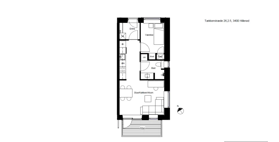 2 værelses lejlighed på 54 m2