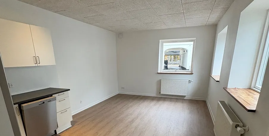 Flot lys stuelejlighed med nye lækre gulve. . Indrettet med god entre, stort soveværelse, nydeligt badeværelse med klinker samt kombi vaske/tørremaskine, stue i åben forbindelse med køkkenet. . Alt i hårde hvidevarer medfølger lejligheden. . God fælles gårdhave - samt depotrum. .