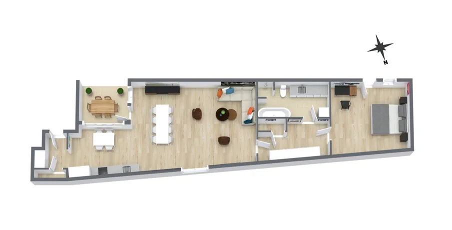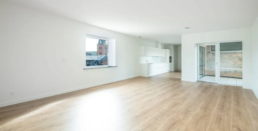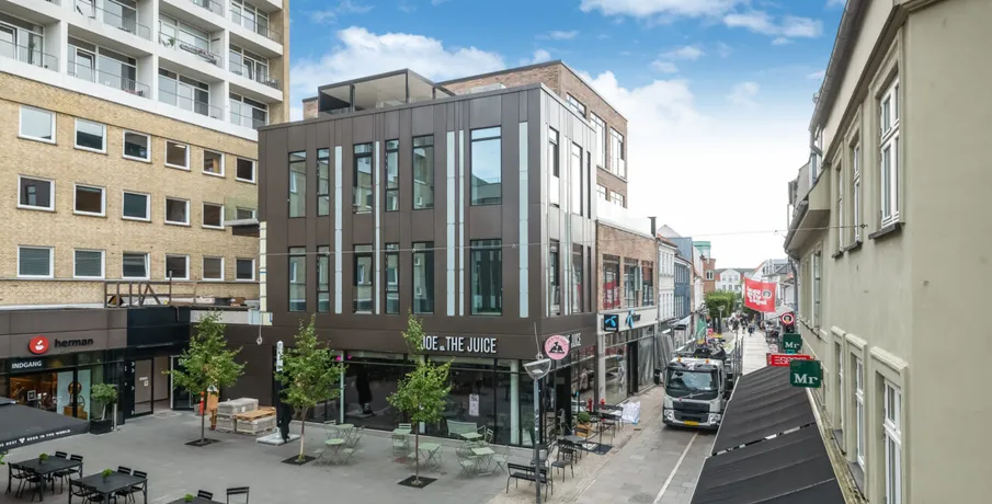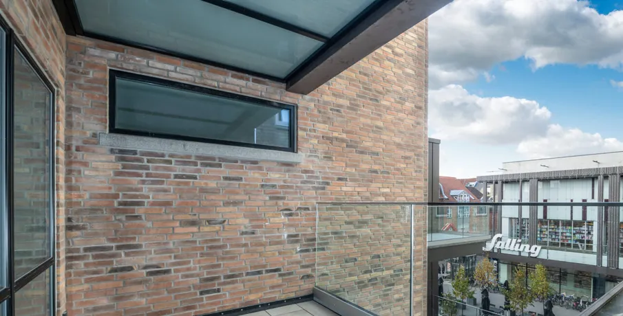 Renoveret lejlighed med elevator og egen terrasse udlejes midt i gågaden i Aalborg Centrum Med lejlighedens beliggenhed befinder man sig midt inde i Aalborgs pulserende byliv. Fra lejligheden er der adgang til byens hyggelige gågader og caféer, Salling, Aalborg Havnefront samt alt det midtbyen har at tilbyde. Lejlighederne er indrettet som en stor 2-værelses lejlighed på 140 kvm. Lejligheden indeholder entré med faste skabe. Herfra er der adgang til lejlighedens store lyse køkken/alrum. SVANE køkken med alt i hårde hvidevarer. Der er fra lejlighedens stue adgang til overdækket terrasse som vender ud mod Sallings gårdplads. Stort badeværelse med bruseniche, SVANE elementer, badekar, vaskesøjle samt indbygget spejl. Gang med indbyggede skabe. Rummeligt soveværelse beliggende ud mod bagsiden af ejendommen. Fakta og materialer: Af materialer i lejligheden kan der bl.a. nævnes følgende. – Brede plankegulve i Eg-look. – Gulvvarme. – SVANE køkken med corian bordplader. – Rummeligt badeværelse med gulvvarme, lyse fliser på gulve og vægge, separat bruseniche, SVANE elementer og badekar. – Skabselementer fra SVANE Køkken. – Alt i hårde hvidevarer. – Egen terrasse. – Elevator i ejendommen. – Stille område uden trafikstøj beliggende tæt ved Salling. Husdyr er efter aftale. Overtagelse hurtigst muligt eller efter aftale. Kontakt os gerne for spørgsmål eller ved ønske om en fremvisning.