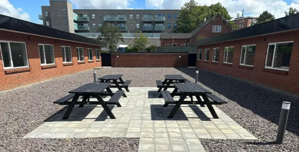 Vi afsluttede totalrenoveringen af denne ejendom sommeren 2023, som er liggende tæt på byen og 2 km fra SDU, så den i dag huser 69 lejligheder.. Indrettet med faste skabe, køkken med hårde hvidevarer. Der er vaskerier på ejendommen. Der er stor parkeringsplads til ejendommens brugere, gårdmiljø, internet og cykelkælder.. Ikke tilladt at holde kæledyr. . Aconto indebære el, vand og varme.