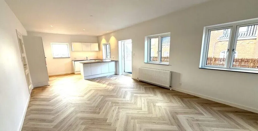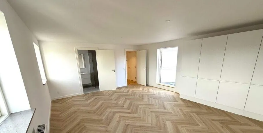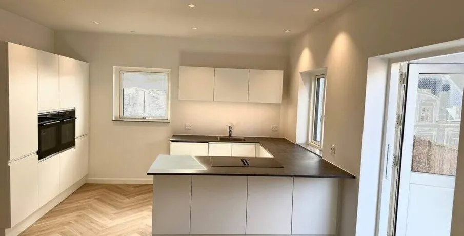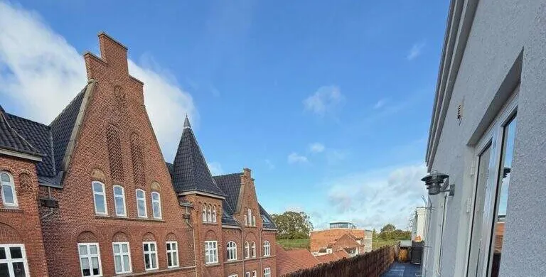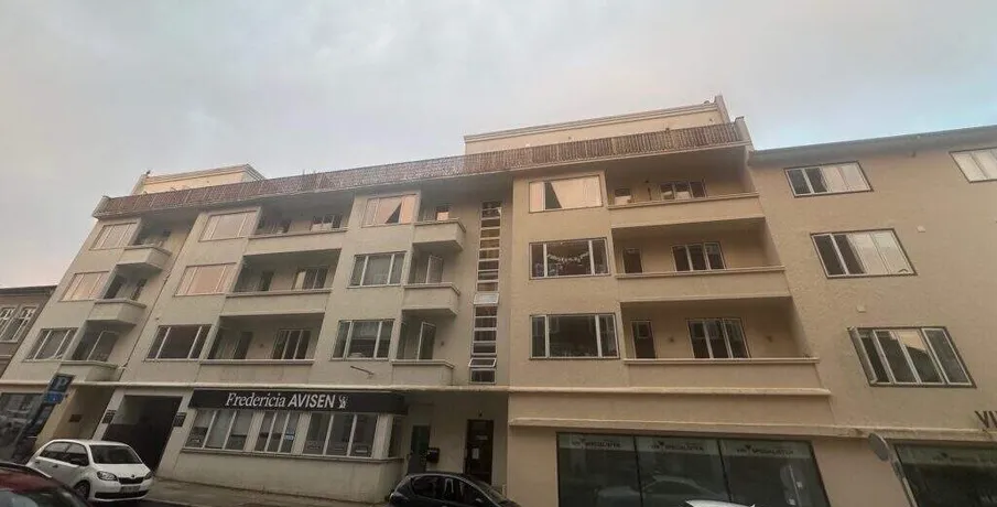 Nyistandsat penthouselejlighed med sildebensparketgulve i centrum af Fredericia. Bestående af stor stue plus 4 værelser, 2 badeværelser. Stor 50 kvm. tagterrasse. Plantegning er ikke målfast. Udlejes ikke til RKI registrerede.
