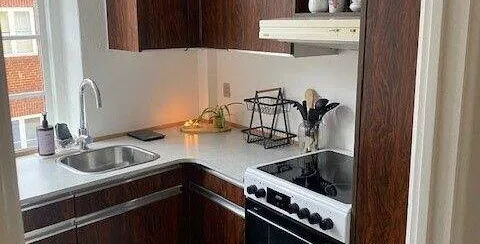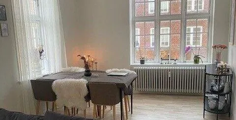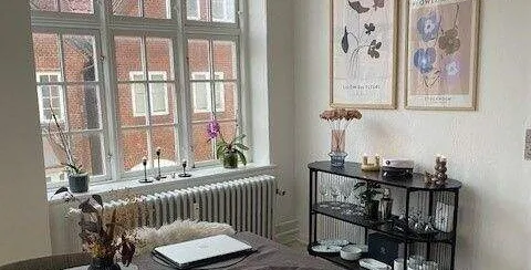 Nydelig 2-værelses midt i byen. . Lejligheden indeholder fordelingsgang, pænt køkken, soveværelse, badeværelse samt fin stor stue med flotte vinduer og god lysindfald. . Trægulve i hele lejligheden.. Tilladt at have en indekat - Hund er efter aftale. .