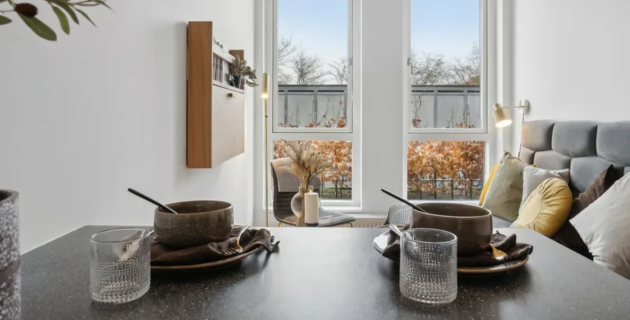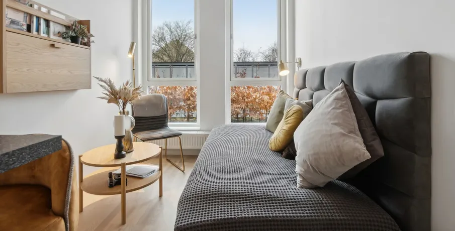 På Telegrafkollegiet får du en privat studiebolig med eget bad og køkken, så du kan trække dig tilbage når du har brug for det. Studieboligerne er indrettet lyst og moderne med godt lysindfald fra store vinduer. . Derudover tildeles hver bolig et 1,5 m² stort opbevaringsrum i kælderen.. Følgende inventar medfølger: . - Køle- fryseskab. - Ovn. - Kogeplade. - Emhætte. - Indbygget skab. Følgende kriterier SKAL være opfyldt for at leje en bolig:. - Du SKAL være studerende eller have ansøgt om studie. - Du SKAL bo der i minimum 9 måneder. - Du må IKKE være registreret i RKI. - Du må IKKE have et husdyr. Kontakt Norse Property Management for yderligere informationer eller en fremvisning. . Hele underetagen er indrettet med et hav af fællesfaciliteter – fx fitness, fælles vaskeri og tørrerum, fælleskøkkener samt lounge - for slet ikke at nævne en fælles biograf til ejendommens beboere.. Internet må ikke være en hæmsko for uddannelsen, så derfor er der naturligvis etableret højhastighedsinternet i hele ejendommen, så du kan tage dit studie med rundt. . Nyd studielivet i den nyopførte ejendom Telegrafkollegiet attraktivt beliggende i Ballerup. . Her har du ikke langt til Ballerup bymidte, DTU Ballerup, Ballerup Centret, sportsfaciliteter samt Ballerup Station. . På blot 23 minutter med toget er du sågar på Københavns Hovedbanegård. .