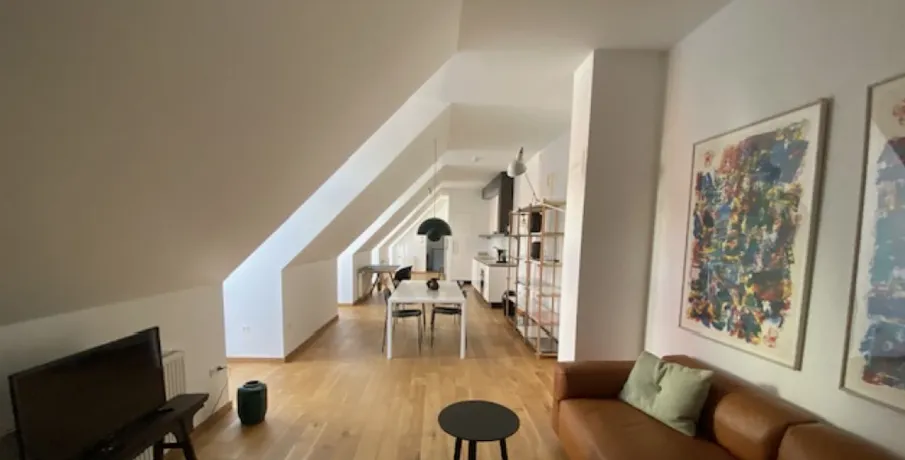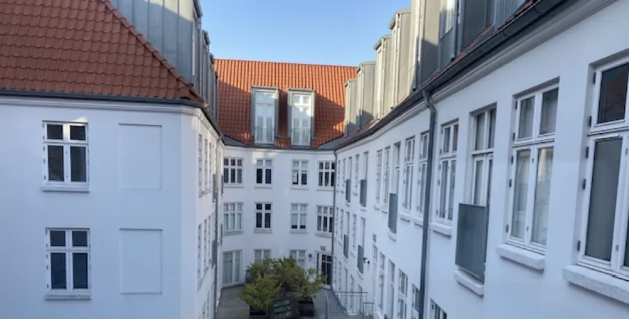Lejligheden ligger øverst i et smukt gårdmiljø ved Strøget tæt på Metro. Der er en stor stue med åbent køkken, et stort soveværelse og et skønt badeværelse med badekar.Møblerne er lidt anderledes end på foto. Der er elevator til 2. sal.Man kan ikke registreres på adressen.