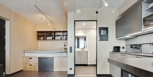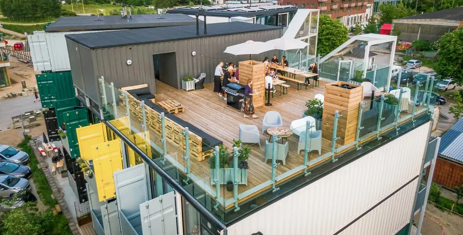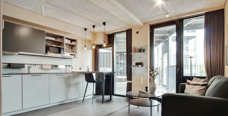 Velkommen indenfor i en "Container" ud over det sædvanlige! I hjertet af Musicon bliver du budt indenfor i en flot og lys container, som er omdannet til en helt almindelig lejlighed. . Der er ikke sparet på detaljerne! Alle boligerne er udstyret med eget køkken og bad, gulvvarme og ventilation samt udført i kvalitetsmaterialer og indrettet for optimal brug. Vær opmærksom på, at billederne er fra et sammenligneligt lejemål og derfor kan afvige fra de faktiske forhold. . Det er ikke muligt at leje lejligheden såfremt du er registreret i RKI eller ønsker at medbringe et husdyr. . Kontakt Norse Property Management for yderligere informationer eller en fremvisning. . Container Living Musicon er et nytænkende containerbyggeri med fokus på design, kvalitet og komfort.. Du kan om sommeren trække dig tilbage på den fælles tagterrasse og nyde solen! I forbindelse med bebyggelsen er der desuden etableret depotrum og fælles vaskehus. . Musicon er en levende bydel i Roskilde. Her trives kultur, butikker og foreningsliv. Vær selv med til at skabe liv både indenfor og på pladser og veje, der inviterer til kreative ideer og leg.. Roskildes kreative bydel ligger i et tidligere industriområde mellem Roskilde Dyrskueplads og Roskilde Station. .