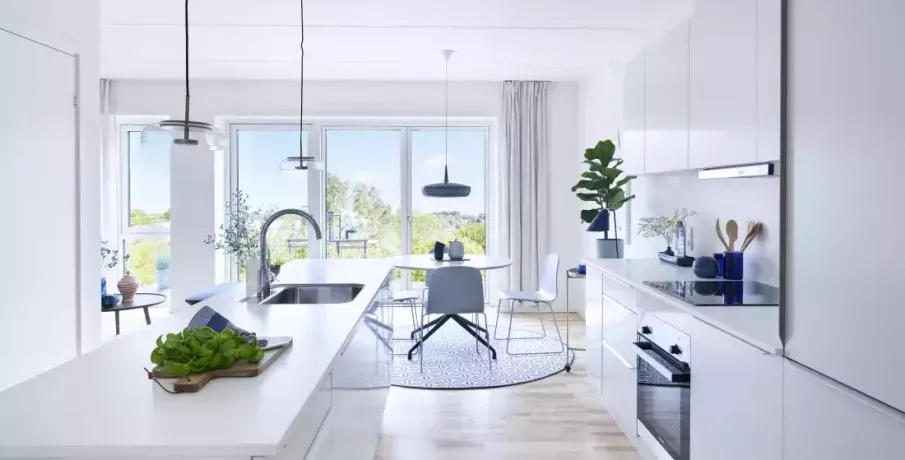 5-værelses lejlighed med en dejlig stor stue med udgang til møblerbar solrig sydvendt altan og vestvendt altan. I forbindelse med den meget store stue findes det moderne og hvide grebsløse Invita køkken med god skabsplads og køkkenø samt alt i hårde hvidevarer. Et soveværelse med faste skabe. Tre værelser med god plads. Badeværelset er holdt i lyse beige fliser på gulv og i brusenichen, som er rummeligt med en stor brusekabine, og pladsen er udnyttet optimalt med både vaskemaskine, tørretumbler, opbevaring og væghængt toilet. I lejligheden findes flotte gulve af lamelparket. Der er godt og flot lysindfald i hele lejligheden gennem de store flotte vinduespartier. Let adgang til depotrum som findes i lejligheden. Lejligheden opvarmes med gulvvarme. Der er lagt fibernet i ejendommen. Det er muligt at ansøge om husdyrtilladelse til ét husdyr i alle vores lejemål(katte ikke tilladt i stuelejligheder). Ejendommen er beliggende i Espergærde, tæt til gode indkøbsmuligheder i nærområdet samt Espergærde Centeret, hvor også det lokale bibliotek ligger. Espergærde station ligger ligeledes i gåafstand fra Triumpbyen. Naturen i området findes ikke bedre, Egebæksvang Skov er oplagt til en gåtur eller løbetur, fra skoven krydser man blot Strandvejen, så står man på kajen i Espergærde Havn, som byder på bl.a. to restauranter og et meget populært fiskehus og iskiosk. Espergærde strand er et paradis for børn og voksne, som elsker at bade på stranden samt være aktiv med mange forskellige former for vandsport. Hvis denne bolig er interessant for dig, så kontakt os allerede i dag for at høre nærmere.