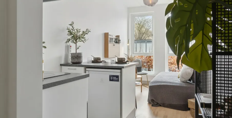 På Telegrafkollegiet får du en privat studiebolig med eget bad og køkken, så du kan trække dig tilbage når du har brug for det. Studieboligerne er indrettet lyst og moderne med godt lysindfald fra store vinduer. . Derudover tildeles hver bolig et 1,5 m² stort opbevaringsrum i kælderen.. Følgende inventar medfølger: . - Køle- fryseskab. - Ovn. - Kogeplade. - Emhætte. - Indbygget skab. Følgende kriterier SKAL være opfyldt for at leje en bolig:. - Du SKAL være studerende eller have ansøgt om studie. - Du SKAL bo der i minimum 9 måneder. - Du må IKKE være registreret i RKI. - Du må IKKE have et husdyr. Kontakt Norse Property Management for yderligere informationer eller en fremvisning. . Hele underetagen er indrettet med et hav af fællesfaciliteter – fx fitness, fælles vaskeri og tørrerum, fælleskøkkener samt lounge - for slet ikke at nævne en fælles biograf til ejendommens beboere.. Internet må ikke være en hæmsko for uddannelsen, så derfor er der naturligvis etableret højhastighedsinternet i hele ejendommen, så du kan tage dit studie med rundt. . Nyd studielivet i den nyopførte ejendom Telegrafkollegiet attraktivt beliggende i Ballerup. . Her har du ikke langt til Ballerup bymidte, DTU Ballerup, Ballerup Centret, sportsfaciliteter samt Ballerup Station. . På blot 23 minutter med toget er du sågar på Københavns Hovedbanegård. .