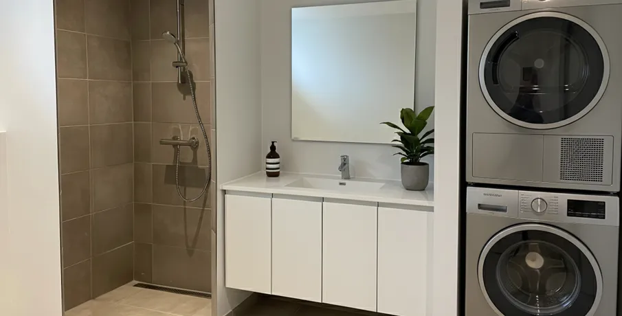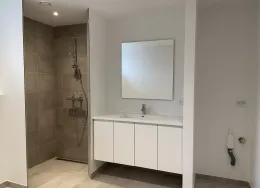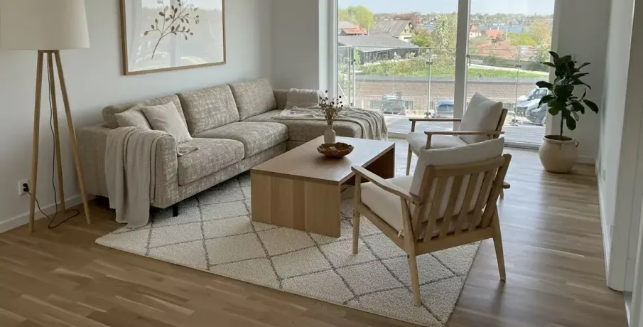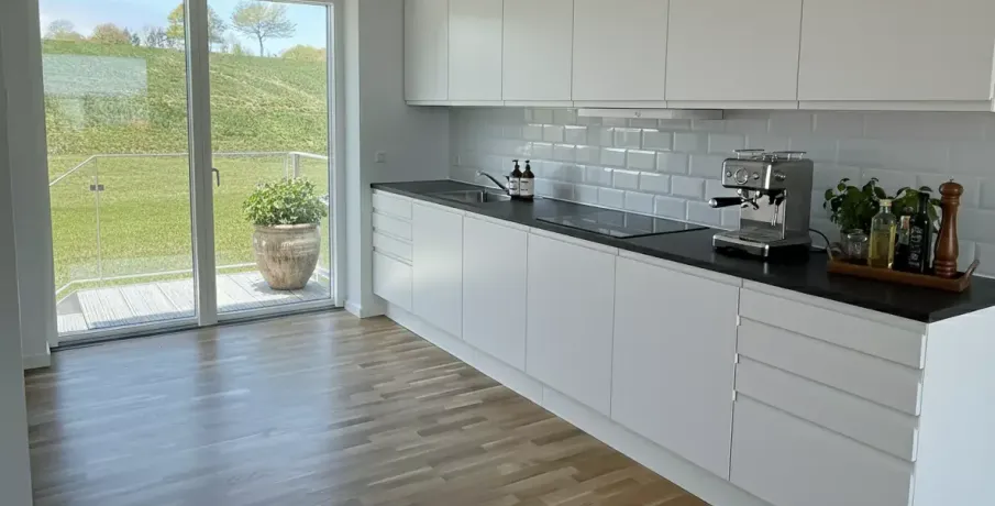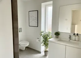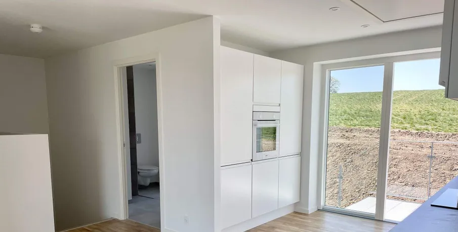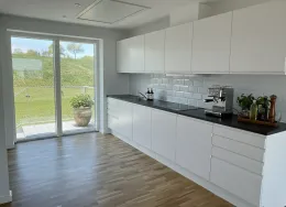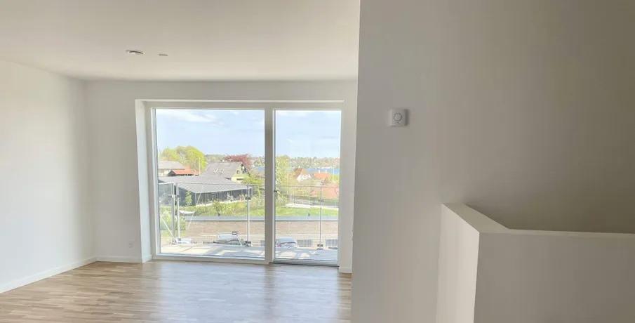 Bo lækkert i moderne rækkehus med 3 værelser, køkken/alrum og smuk udsigt i det skønne Troense på Tåsinge.. Vil du bo i et stort, velindrettet rækkehus, hvor det moderne og luksuriøse går hånd i hånd med fred, ro og idyl – og ikke mindst smukke, historiske omgivelser? Så er dette 2-plans rækkehus lige noget for dig.. Her får du alt, du kan ønske i et nyere, rummeligt lejemål indrettet med lækre materialer, 2 badeværelser, terrasse og altan med smuk udsigt, et roligt kvarter med grønne områder og et idyllisk samfund med lystbådehavn og fine, gamle huse.. Rækkehuset indeholder:. Stueplan. • Fordelingsgang med flotte store klinker. • 2 værelser, hvoraf ét har indbygget skab.. • Stort, lyst badeværelse med flotte klinker på gulv og i brusebad. • Mulighed for opsætning af egen vaskesøjle. • Depotrum med teknikskab – perfekt til opbevaring. Førstesal. • 1 værelse . • Stort, flot køkken/alrum med et lækkert, moderne køkken. • Køkkenet er udstyret med opvaskemaskine, køle-/fryseskab, kogeplade, indbygget ovn og emhætte. • Endnu et badeværelse med brusebad. • Egen fliseterrasse med adgang via terrassedør fra køkkenet. • Udgang til skøn altan med dejlig udsigt fra alrummet/stuen. Du får også:. - Smukke trægulve i alle husets rum. - Eget skur med god opbevaringsplads. - Stor, fælles parkeringsplads til fri afbenyttelse. - Tilladelse til ét husdyr med husdyrskontrakt. Lejemålet er udstyret med varmepumpe for billigst mulig opvarmning.. Ved ønske om fremvisning bedes du kontakte os direkte på besked eller via telefon. . OBS! Interiør vist i det visualiserede indretningsforslag medfølger ikke.