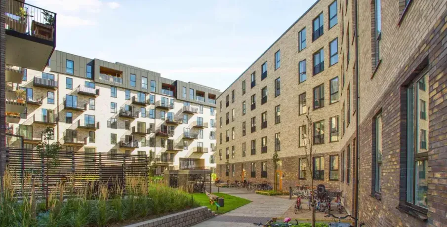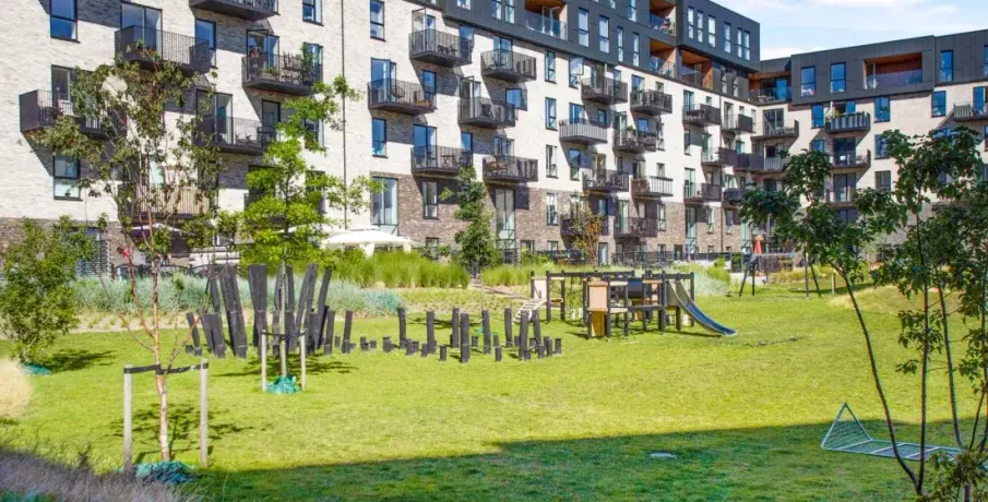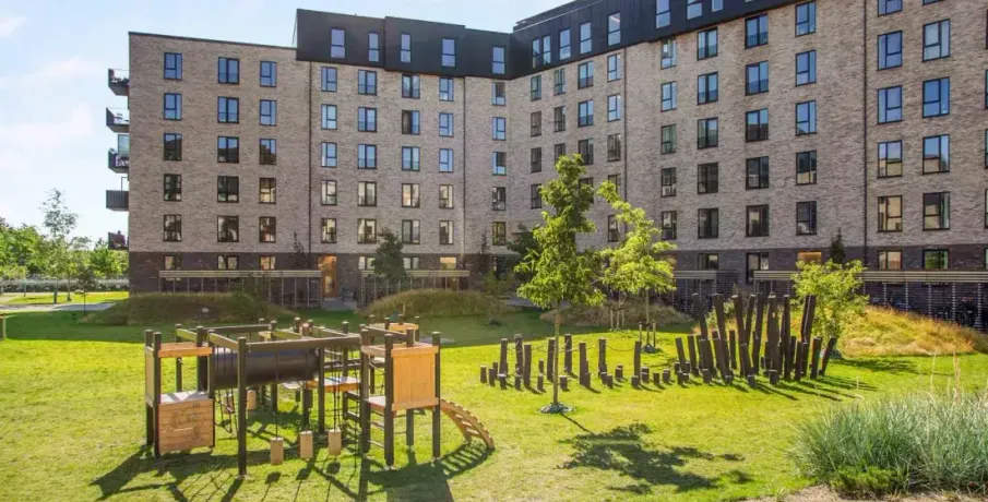 Lejligheden er opført i skandinavisk stil, der får den til at fremstå moderne, lys og indbydende. De store vinduer lukker store mængder dagslys ind og skaber derved en varm atmosfære og et flot spil på det lyse egetræsgulv. Lejlighedens hjerte er et centralt opholdsrum med åbent køkken og spiseplads. Det diskrete, hvide køkken er fra Invita med hårde hvidevarer fra Siemens. På badeværelset er der fliser på gulvet og i brusekabinen. Der er desuden vaskemaskine og tørretumbler fra Siemens. I mastersoveværelset findes indbyggede skabe til opbevaring. Det er muligt at ansøge om husdyrtilladelse i alle vores lejemål. OBS: ønskes der mål af lejligheden skal du selv huske opmålings udstyr til fremvisning, da der ikke er mål på plantegningen.