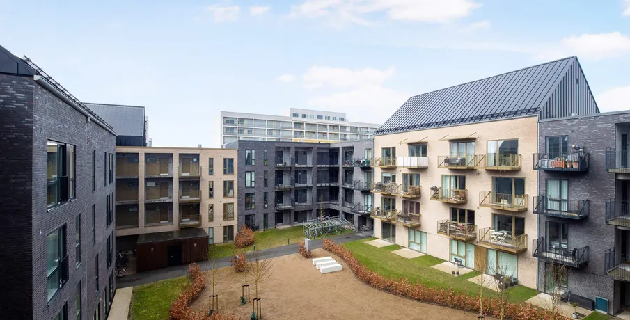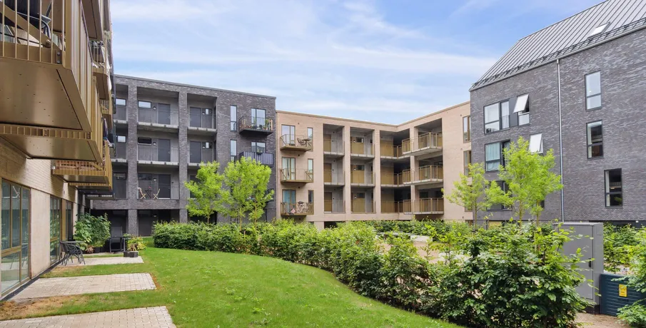 . ÅBENT HUS HVER ONSDAG FRA 17.00 - 17.30. ADRESSEN ER: Gudrunsvej 3G (følg danbolig-skilte når du ankommer).. Ved Ringvejen ikke langt fra Aarhus C, er en helt ny urban, pulserende og attraktiv bydel ved at tage form, og i bygningerne har studie- og ungdomslivet de helt perfekte rammer.. Bo til leje i en af bygningens 165 lejeboliger i de bedste materialer og kvaliteter, fordelt på 1-, 2- og 3-værelses lejligheder. Her er lækkert køkken og badeværelse, og plads til både sove-, hygge- og studiemiljø. I lejlighederne er der kælet for alle detaljer, så der kan stilles skarpt på studierne i helt nye og cool rammer.. Alle lejeboligerne har udsigt til lyst, grønt gårdrum – og så er der altaner eller terrasser til næsten alle boliger. Bygningen er tegnet af Rambøll Arkitekter, er i fire etager og opført i sektioner af både lyse og mørke tegl, som giver bebyggelsen et eksklusivt og markant udtryk. Tre mørke og elegante taghældninger skaber depotrum til lejlighederne på toppen og giver huset sit helt eget look.. GLÆD DIG til din nye, kommende studiebolig, midt i et innovativt og nyudviklet område med genial infrastruktur og masser af liv – tæt på storbyen. OBS! Billeder er fra lignende lejemål.