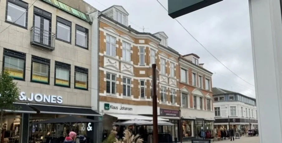 Flot total renoveret 3- værelses lejlighed beliggende på 3. sal i flot ejendom midt i gågaden. Lejligheden er i 2023 blevet renoveret med bl.a ny gulve, garderobeskabe, køkken og badeværelse. Lejligheden er indrettet med god rummelig entre, stort soveværelse med god skabsplads, fin stue med kig til gågaden og fransk dør til spisestue, gæstebadeværelse , flot nyt køkken med kogeplader, ovn, emhætte samt køle//fryseskab, flot nyt badeværelse med vaskemaskine, lille gang med adgang til bagtrappe. En rigtig fin lejlighed der bør ses ! Arealoplysninger.: lejligheden har et bruttoareal på 74 m² hvoraf der udgør 9,75 m² til fælles adgangsareal og 3 m² til fællesareal. Ingen husdyr eller rygning tilladt A conto forbrug pr. mdr. a conto varme kr. 800,- a conto vand kr. 300,- Udover a conto forbrug betaler lejer et månedeligt fast beløb på kr. 300,- til elforbrug Kontakt os alle hverdage mellem kl. 09:00 - 16:00 for yderligere oplysninger.