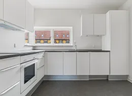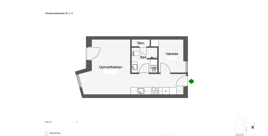 Om boligen:Velkommen til denne moderne 2 værelses lejlighed, der byder på stilfuld komfort og praktiske genialiteter. Her er virkelig tænkt over fordeling af kvadratmeterne med en smart planløsning, der giver en optimal indretning. Det moderne køkken er et sandt knudepunkt for denne lejlighed med en flydende overgang til stuen. Udstyret med topmoderne apparater og elegant design er det et ideelt sted til madlavning og underholdning. De glatte overflader og smarte opbevaringsløsninger giver både funktionalitet og æstetik mens det åbne layout skaber en rummelig og inviterende atmosfære. Den ekstra hyggekrog i stuen giver mulighed for at give et personligt touch i indretningen. Overfor køkkenet ligger lejlighedens værelse.Badeværelset er med til at skabe en oplevelse af ro og afslapning med en praktisk vaskesøjle, der gør det at ordne vasketøjet til en leg. Det stilfulde design og de moderne armaturer skaber en fornemmelse af luksus mens det funktionelle layout sikrer praktisk brug i hverdagen. Den franske altan, er med til at åbne op for lejligheden, og giver mulighed for at lade den friske luft strømme ind.Bemærk venligst, at billederne kan være fra en anden bolig, hvorfor indretning, beliggenhed og udsigt kan variere. Se plantegningen for indretningen af denne bolig.Om ejendommen:Munkemøllestræde 20 i Odense C præsenterer en unik boligmulighed til dig, der ønsker et hjem omringet af byliv. Ejendommen byder på 26 attraktive lejemål. Hertil kommer en stor fælles tagterrasse, hvor du kan mødes med naboer eller blot nyde en rolig stund for dig selv.Om området:Bo i historiske og kulturelle omgivelser, næsten lige ved siden af H.C. Andersens barndomshjem og tæt på det idylliske grønne område, Munke Mose. Livet her er omringet af et udvalg af hyggelige restauranter og caféer, der sikrer, at du aldrig er langt fra byens kulinariske oplevelser.
