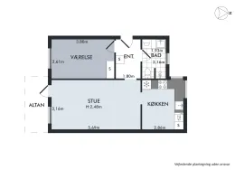 2 værelses lejlighed på 49 m2