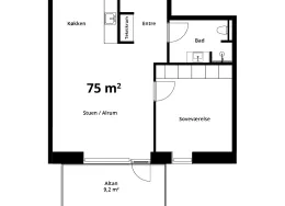 2 værelses på 75 m
